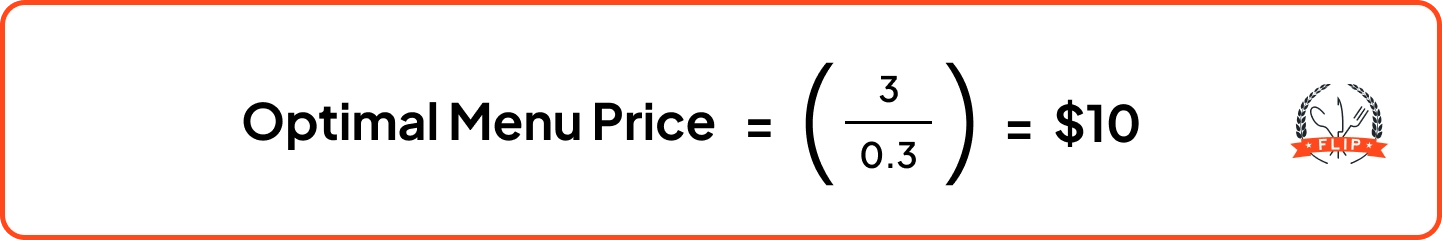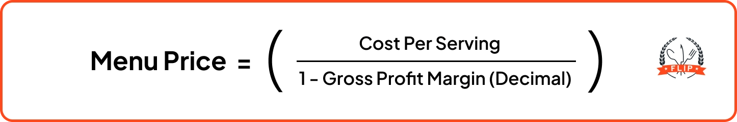To determine your optimal menu price, divide your cost per serving by your ideal food cost percentage: