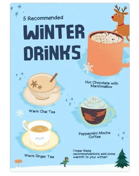 You can hire a professional graphic designer to winterize your menu or do it yourself with Canva. Check out these free customizable templates and get started on yours today!